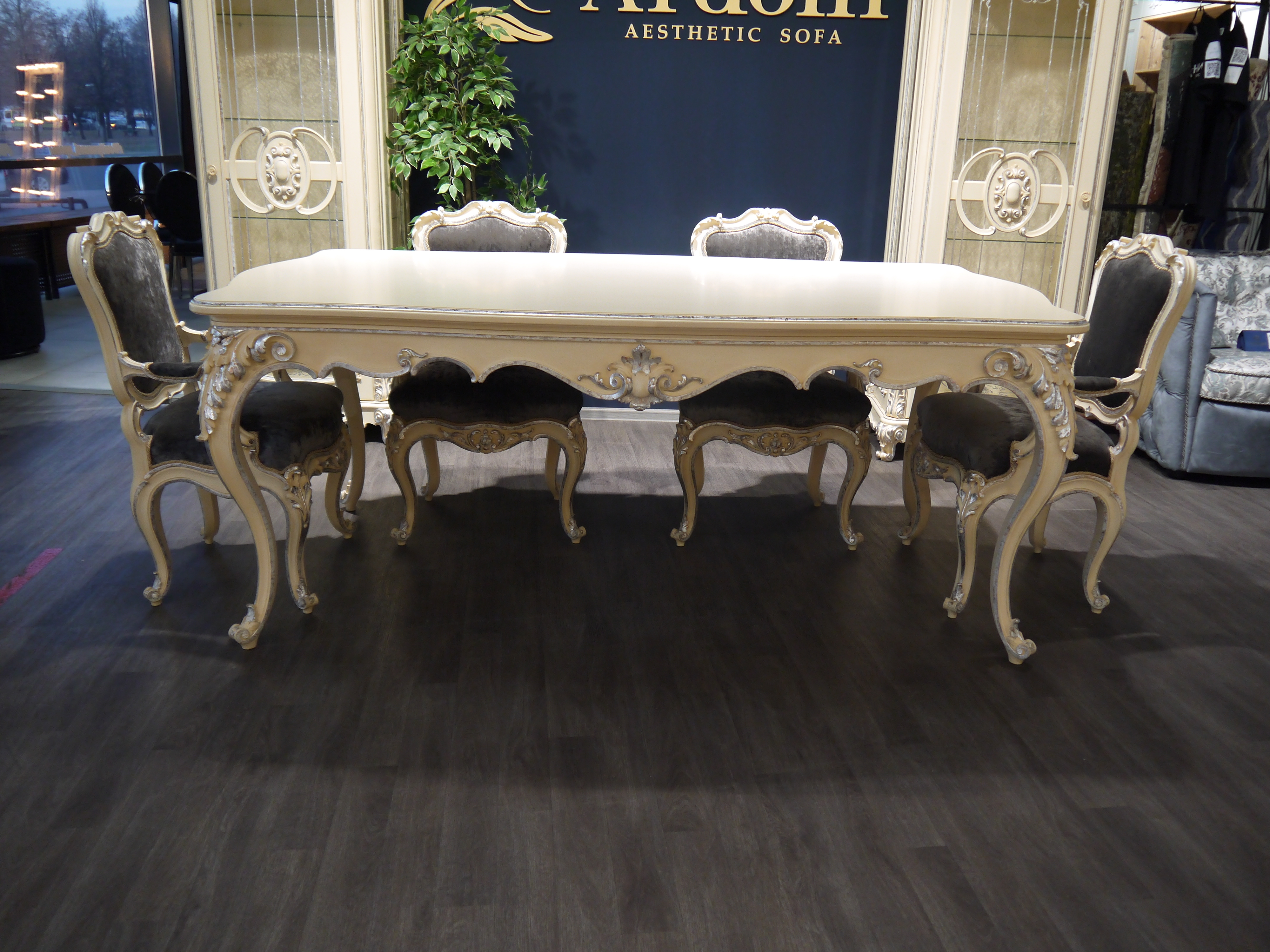 Дополнительно: Витражи покрыты Поталью, кухня украшена декором в виде багетов, пилястр.