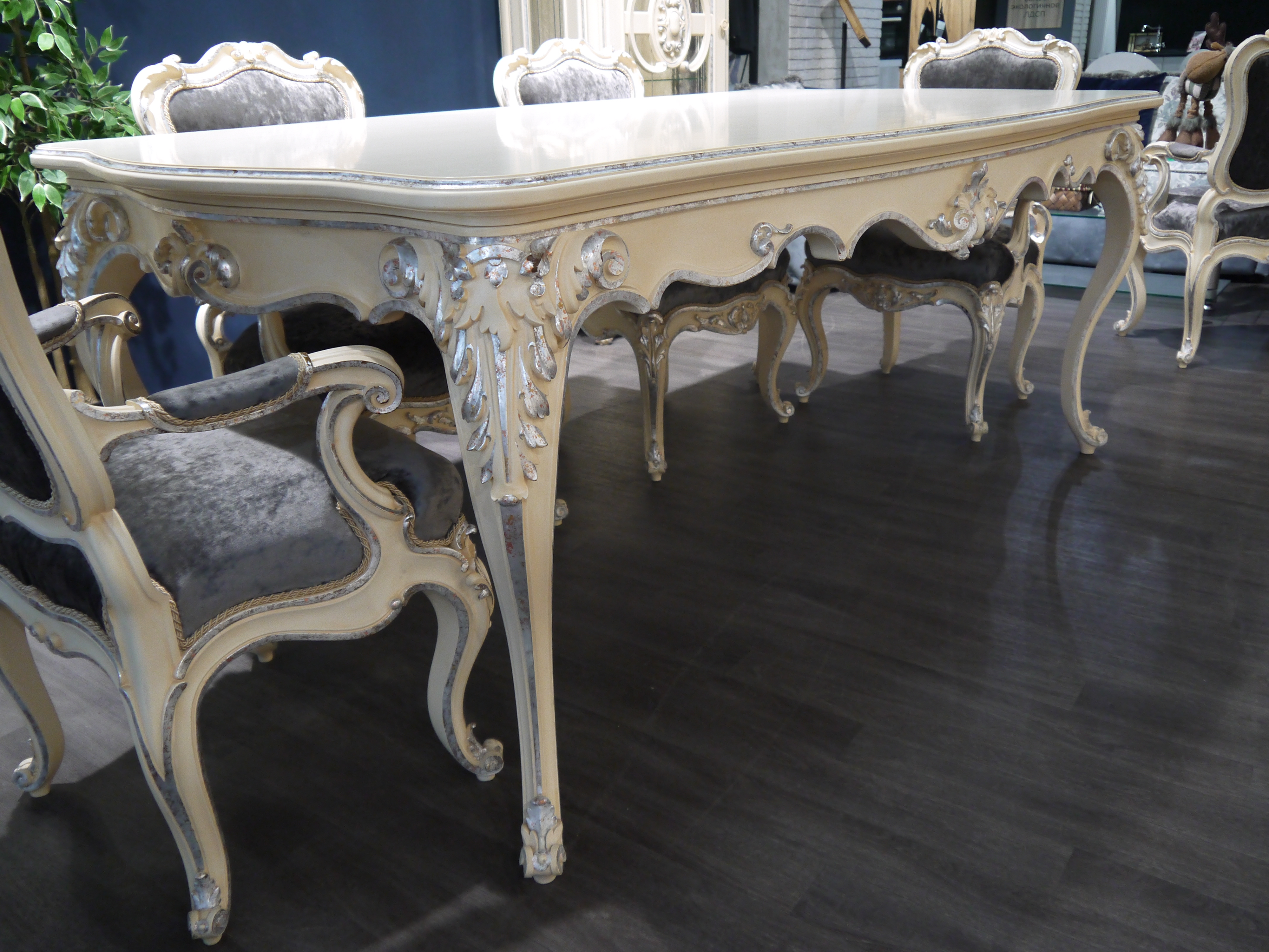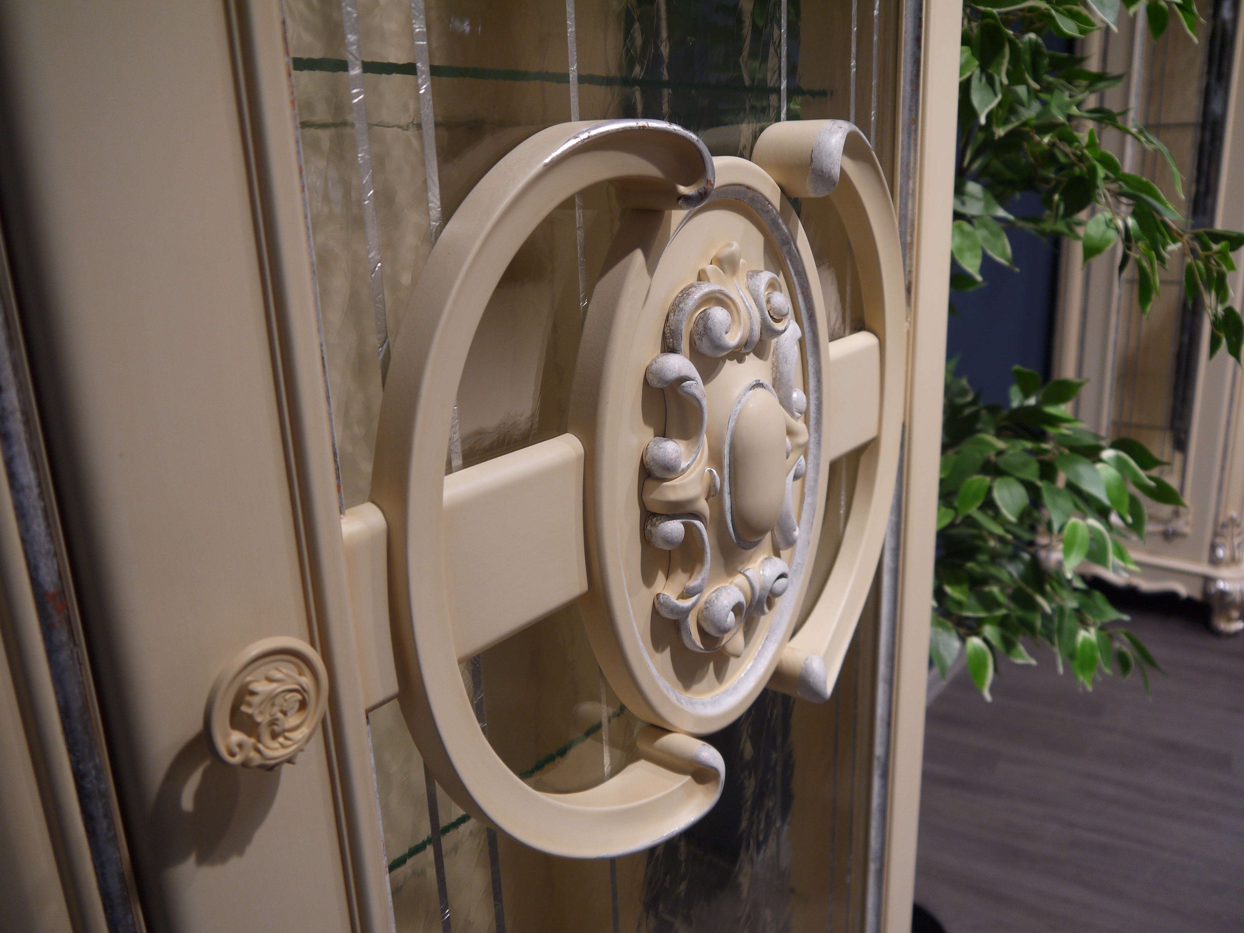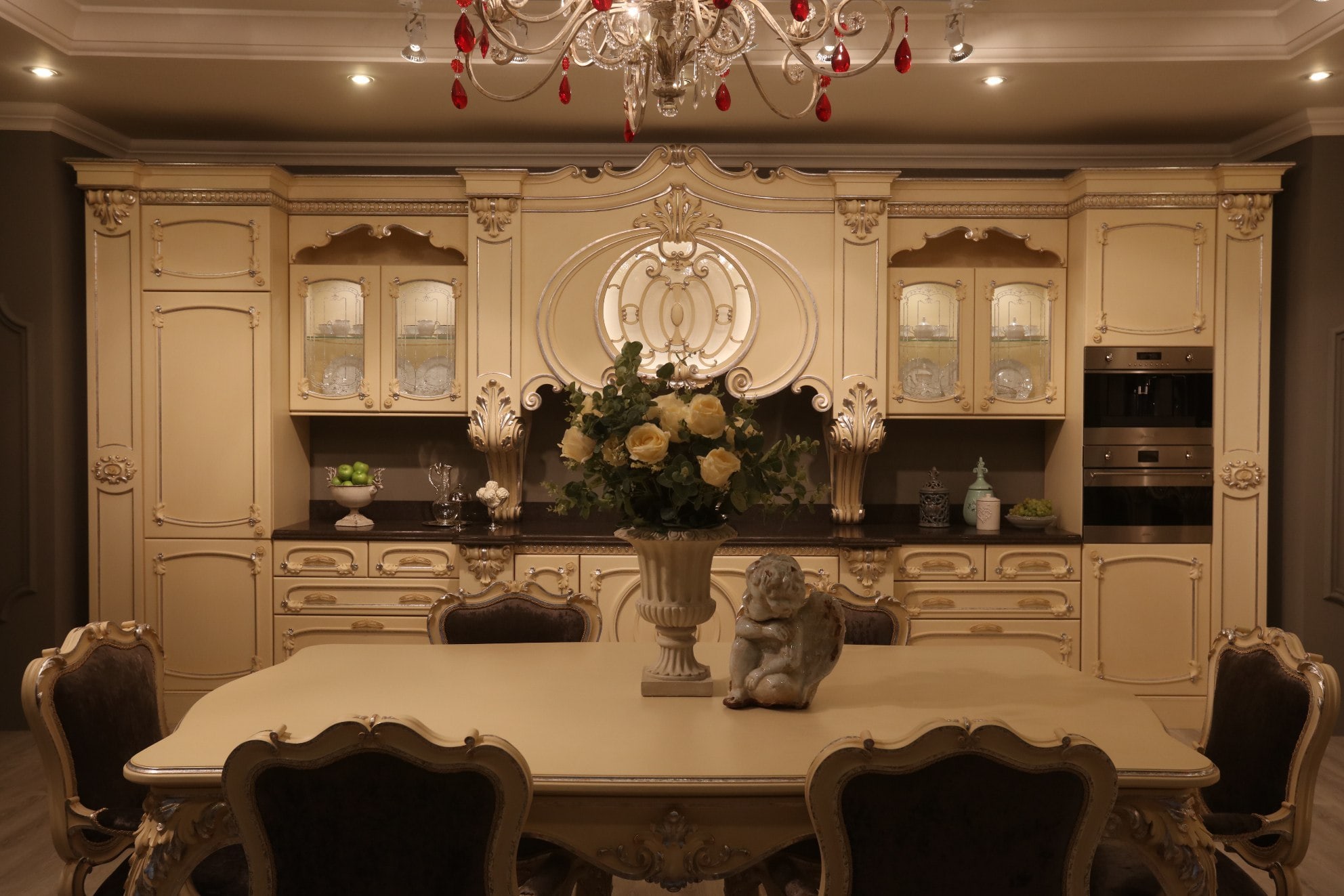 Дополнительно: Витражи покрыты Поталью, кухня украшена декором в виде багетов, пилястр.