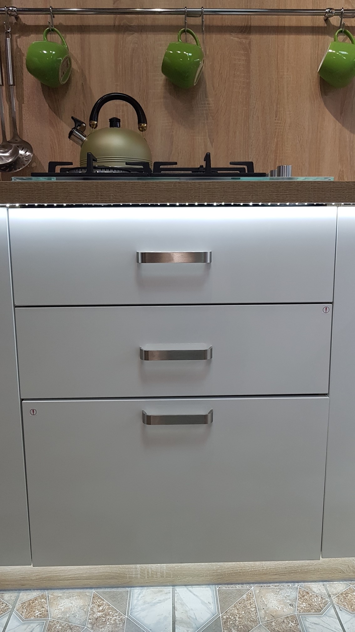 Дополнительно: Фурнитура GRASS (Австрия),подсветка по всему периметру кухни. Тамбураты с каждой стороны.