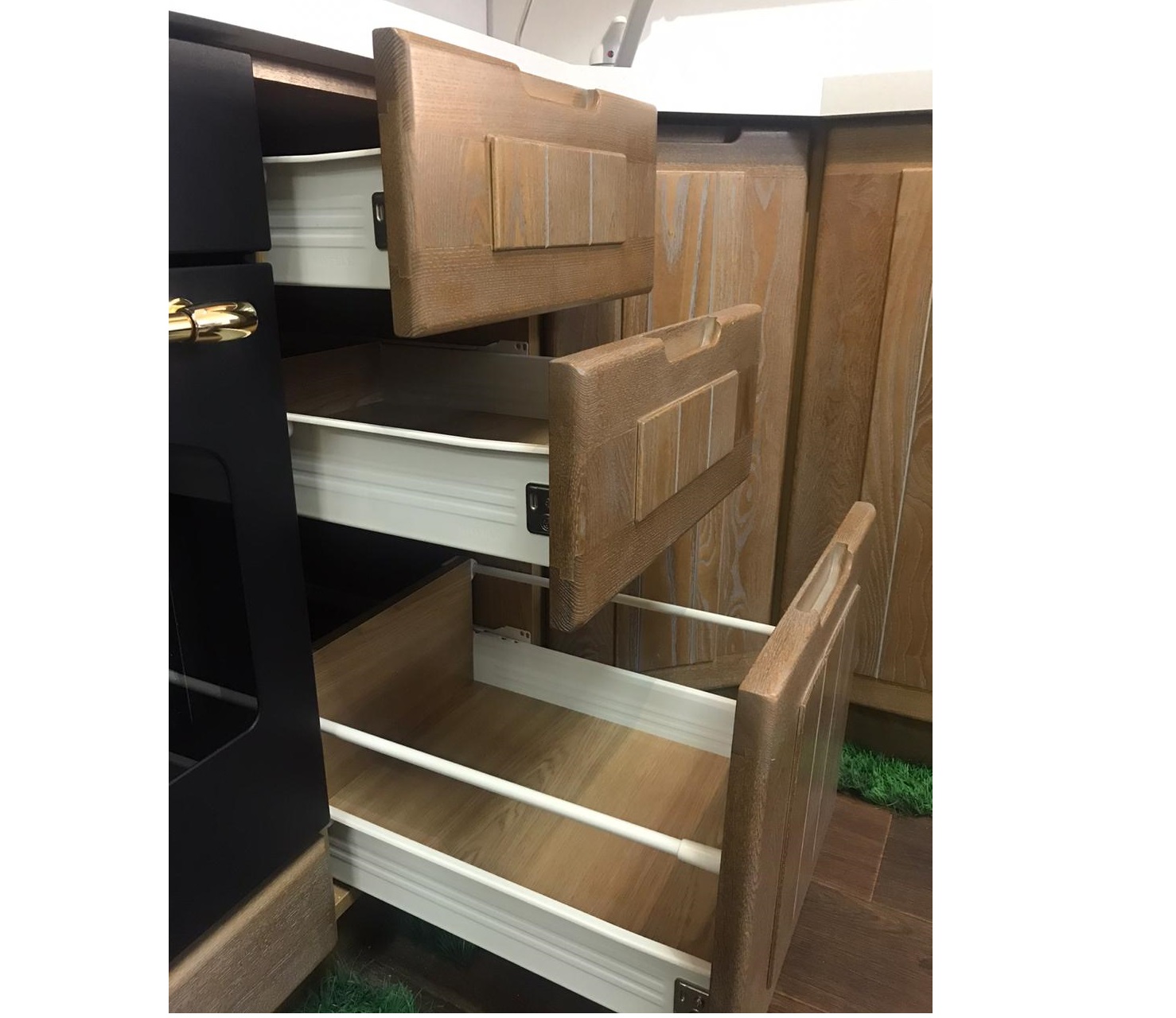 Главная и основная особенность - для производства кухни из массива под старину, были взяты только натуральные материалы, полностью экологические.