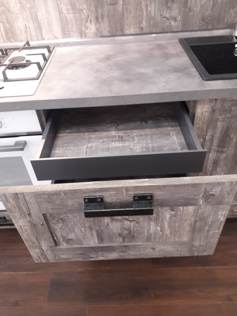 Дополнительно: искусственно состаренные и покрытые уникальной эмалью с патиной фасады создают роскошный эффект винтажного старения в интерьере кухни. Фурнитура подчеркивает стиль и усиливает визуальный эффект старения и потертости на фасадах. Так же имеется встроенный тандембокс.