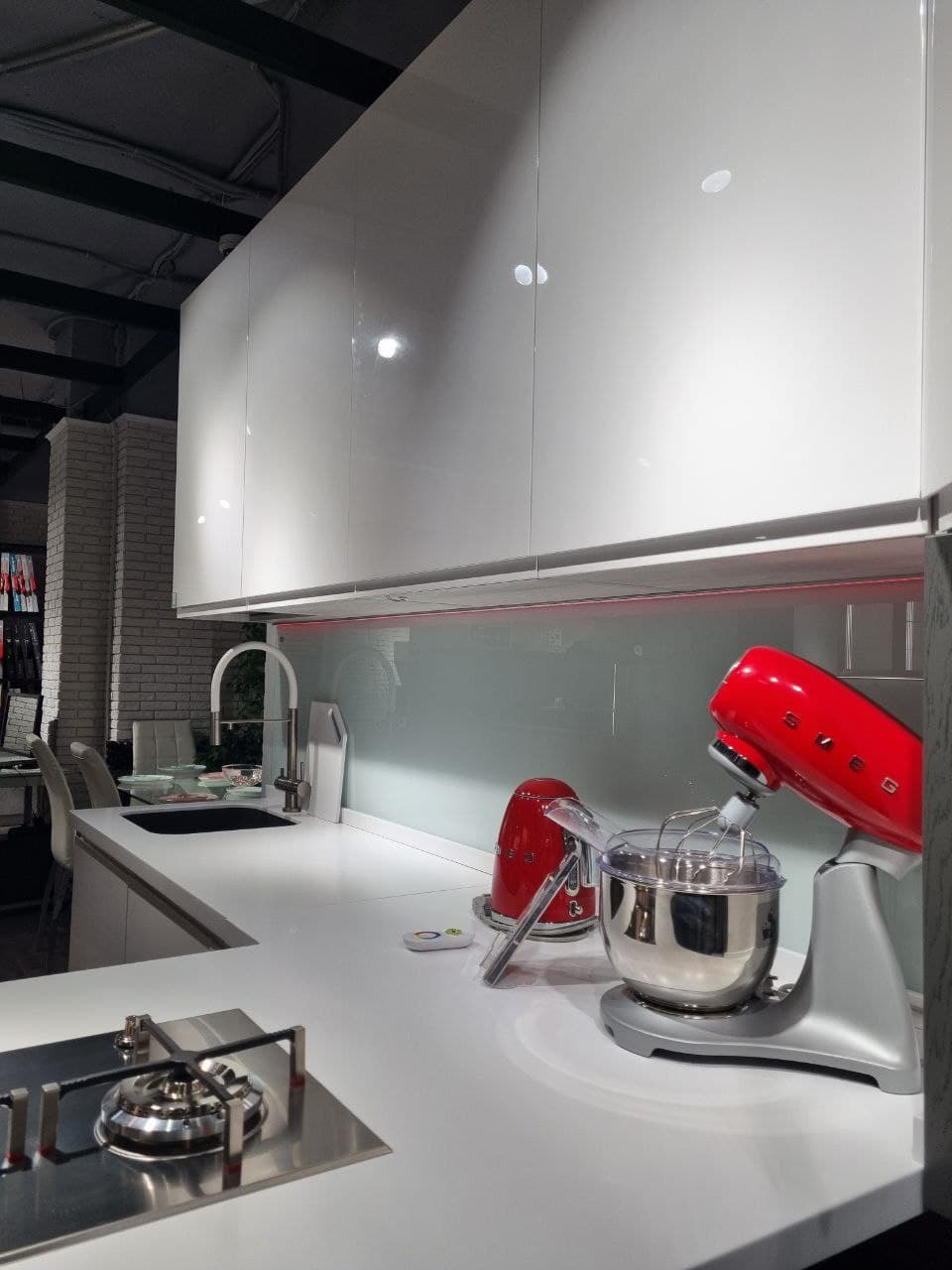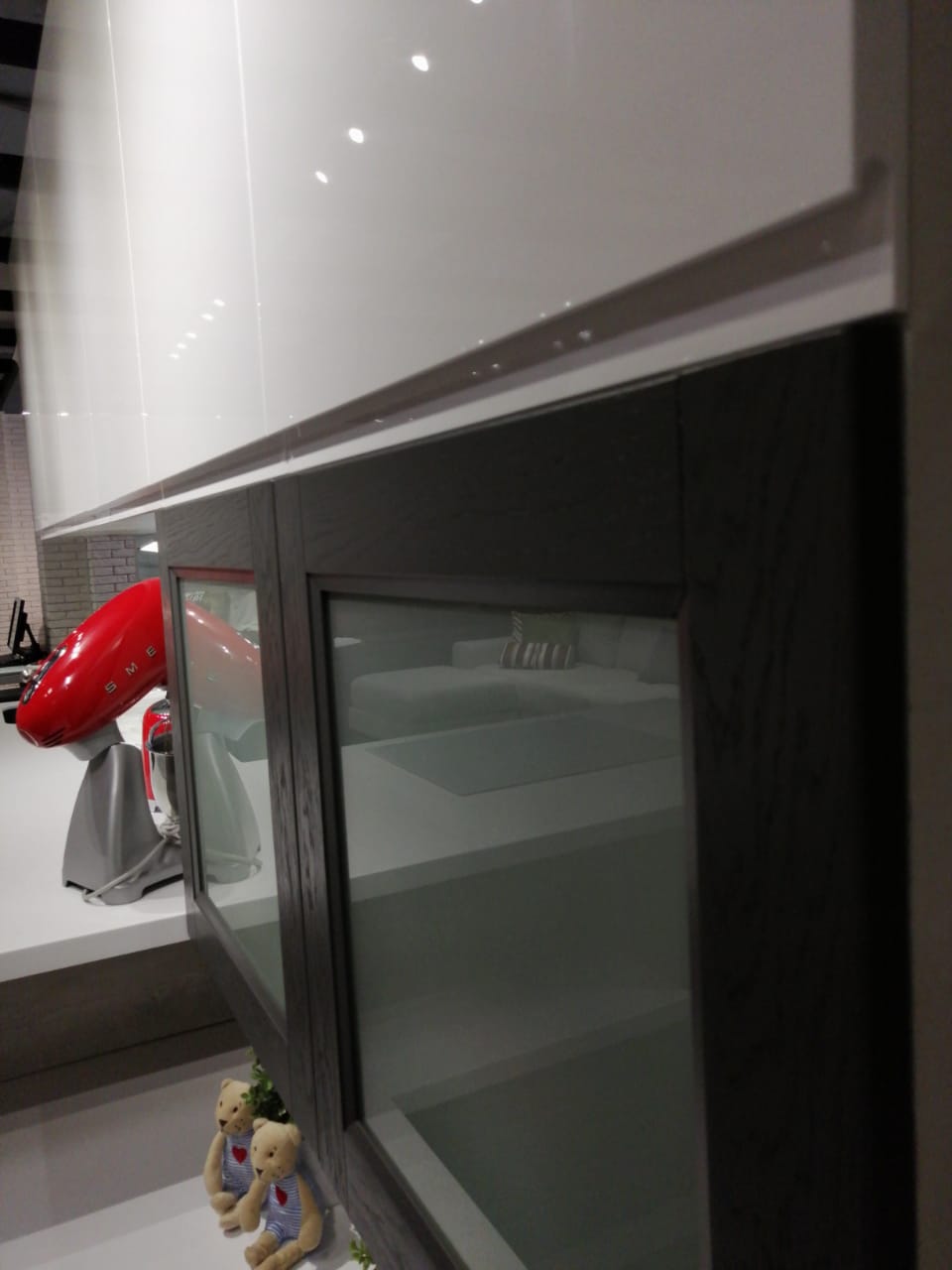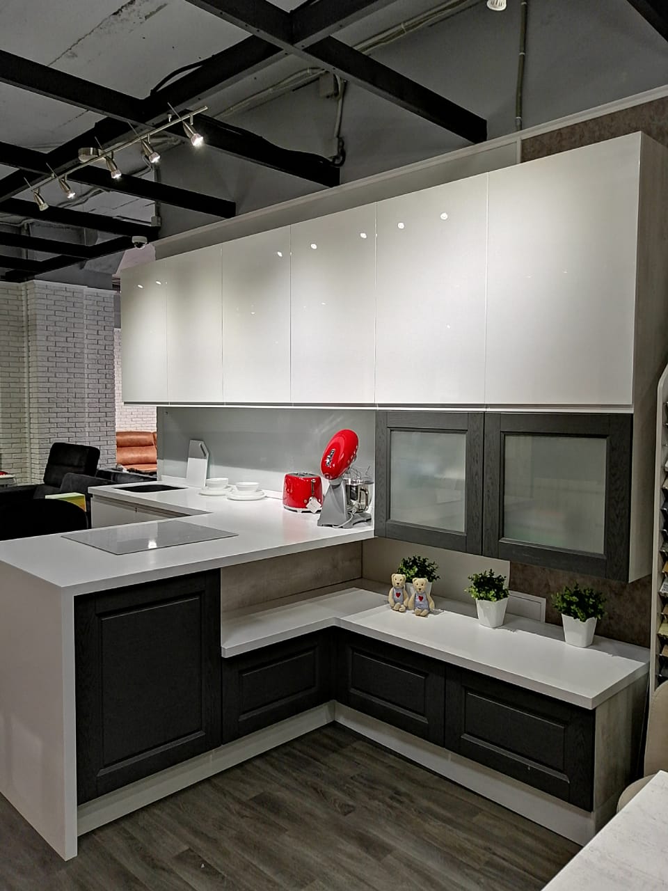 Материал фасада: МДФ эмаль глянец + массив дуб