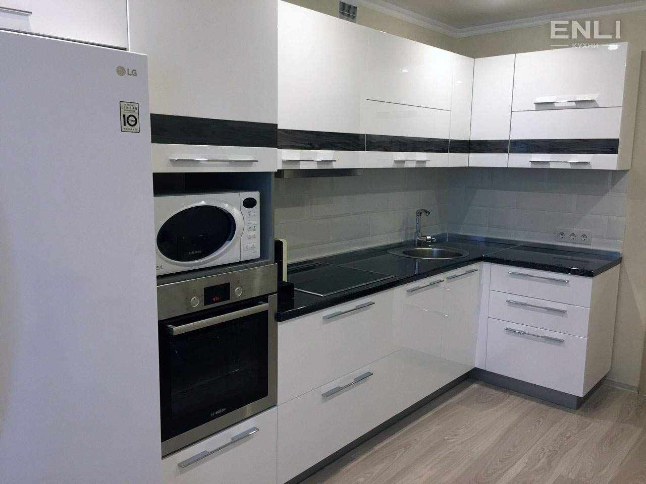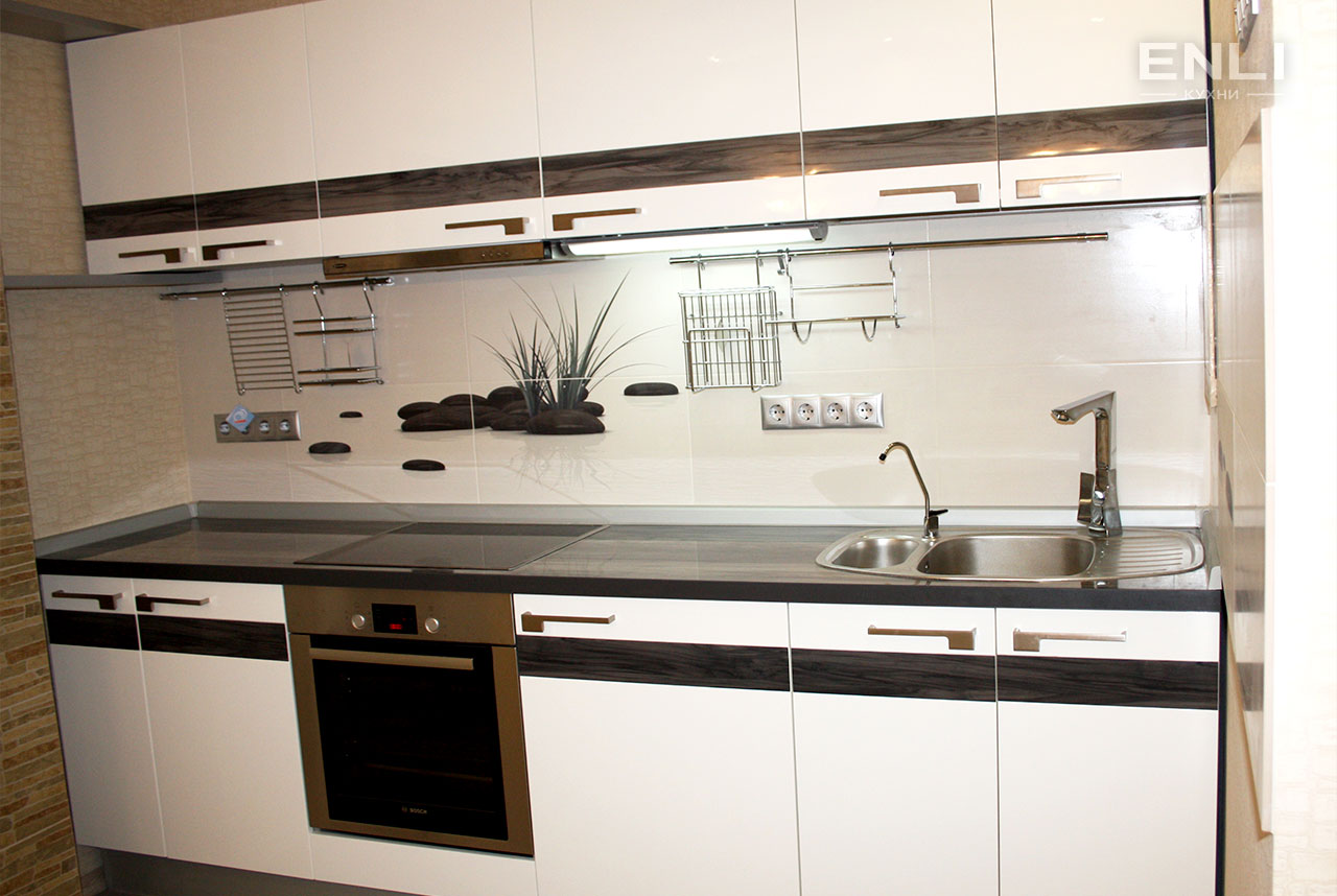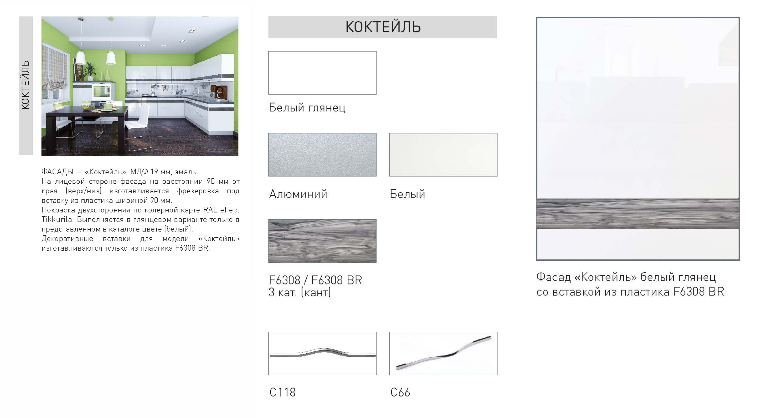 ФАСАДЫ: плита МДФ 19 мм эмаль, глубокий глянец, декоративная вставка из пластика.