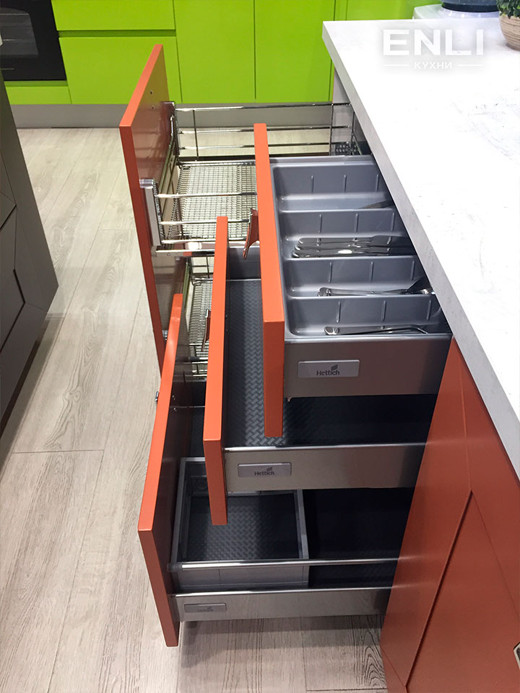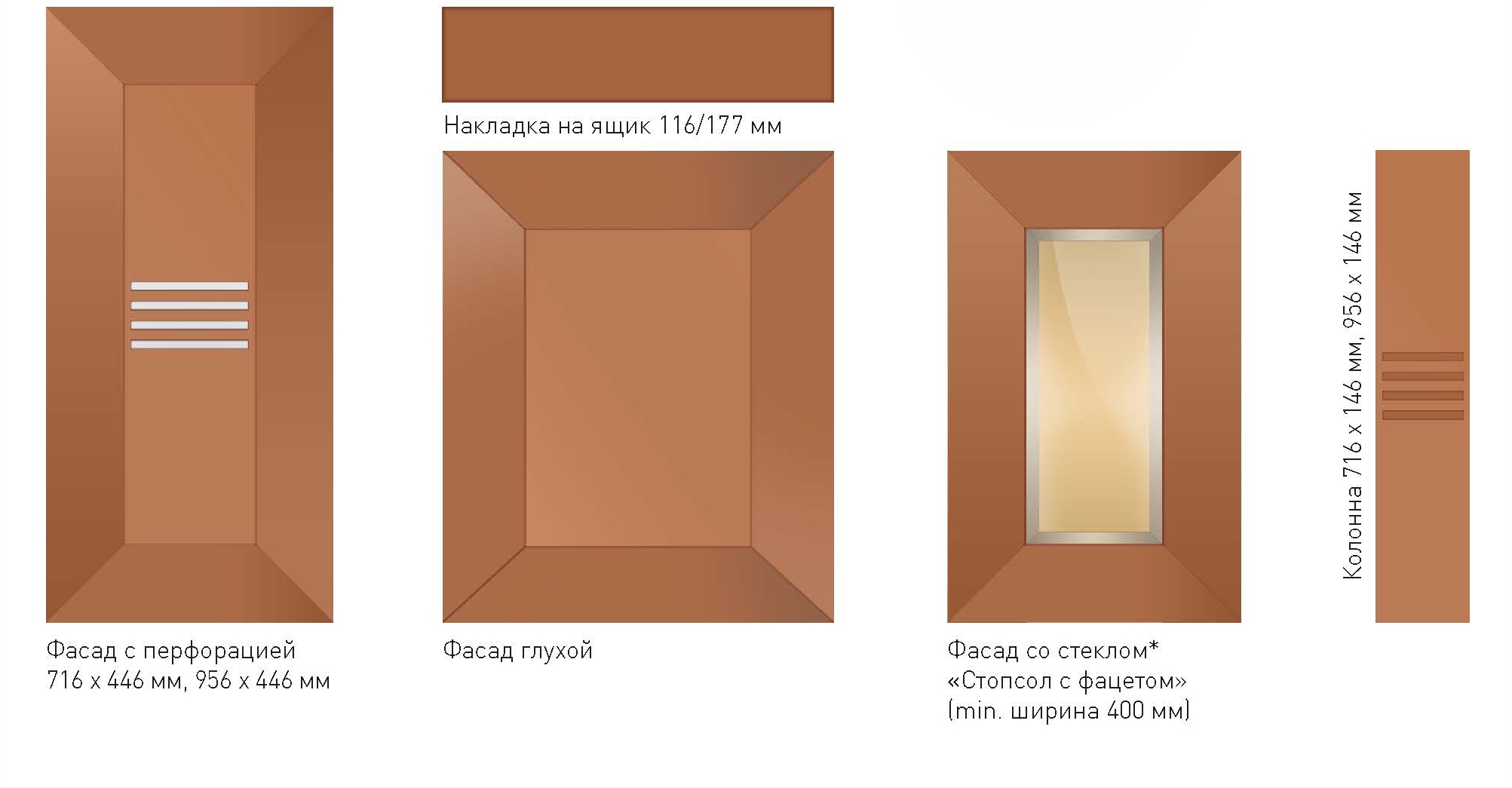ФАСАДЫ: «сложные» МДФ 22 мм, эмаль матовая.