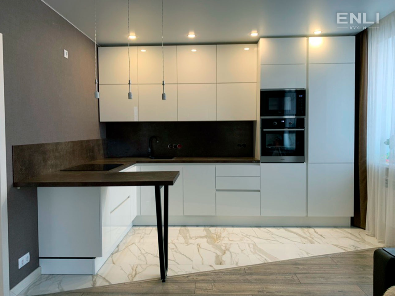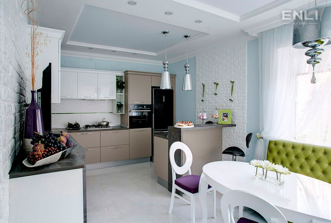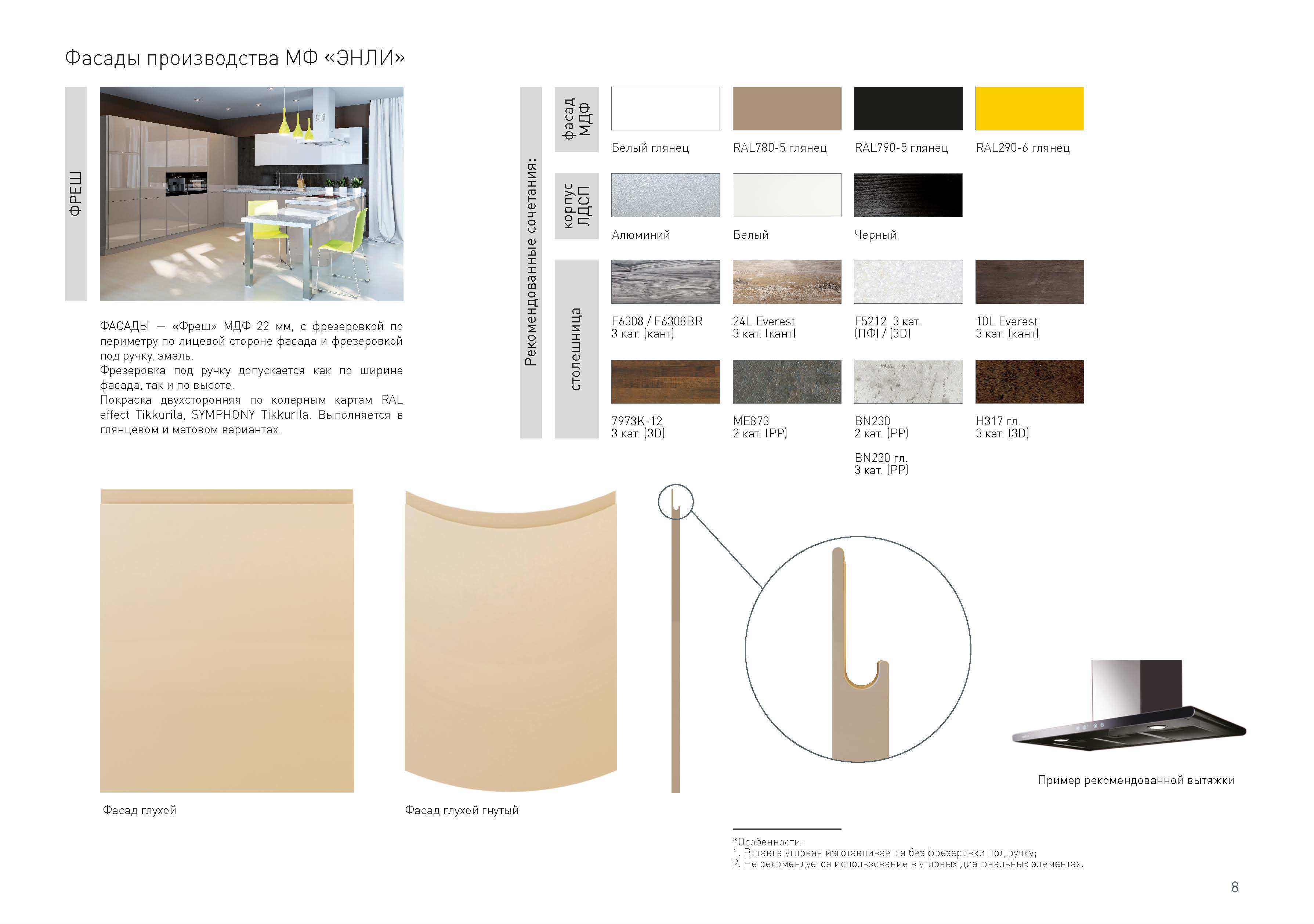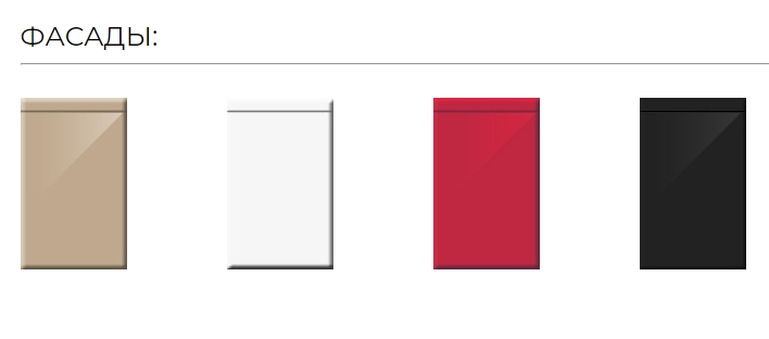 ФАСАДЫ: плита МДФ 22 мм эмаль, глубокий глянец. Покраска двухсторонняя по колерной карте RAL effect Tikkurila. Фасады этой модели можно окрасить в любой оттенок по каталогу RAL, как в глянцевом, так и в матовом варианте.