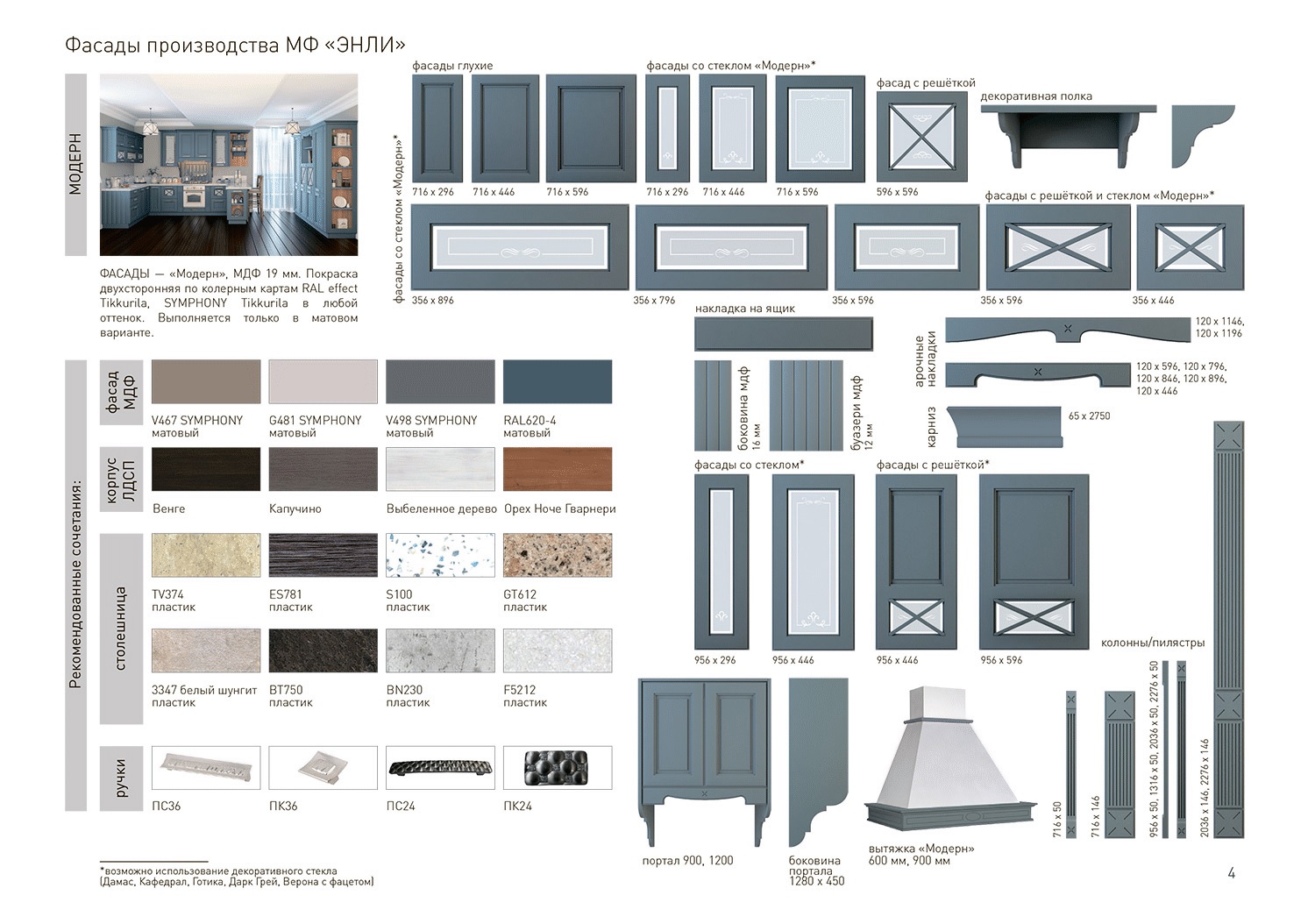 ФАСАДЫ: плита МДФ 19 мм, матовая эмаль.