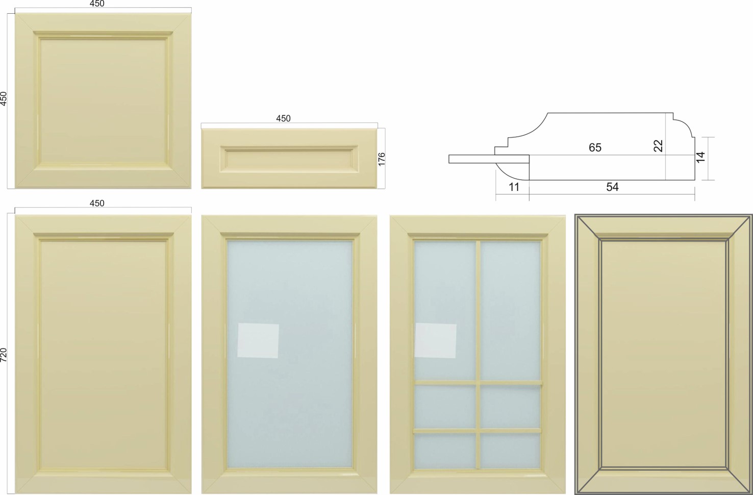 Филенка выполняется из МДФ. Рамка из массива березы или МДФ. Покрытие эмаль: высокий глянец и матовая.