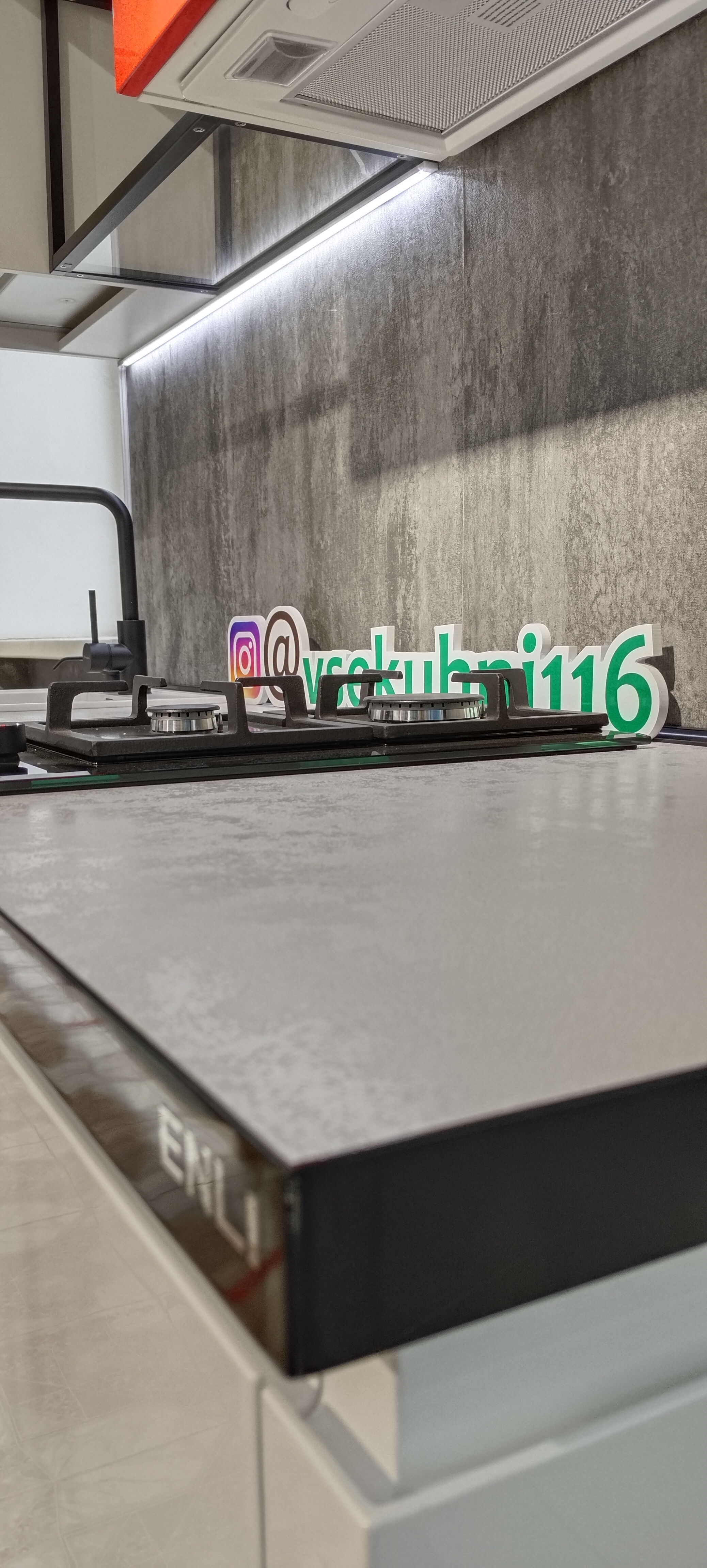 Материал столешницы + стеновая панель: влагостойкий HPL пластик