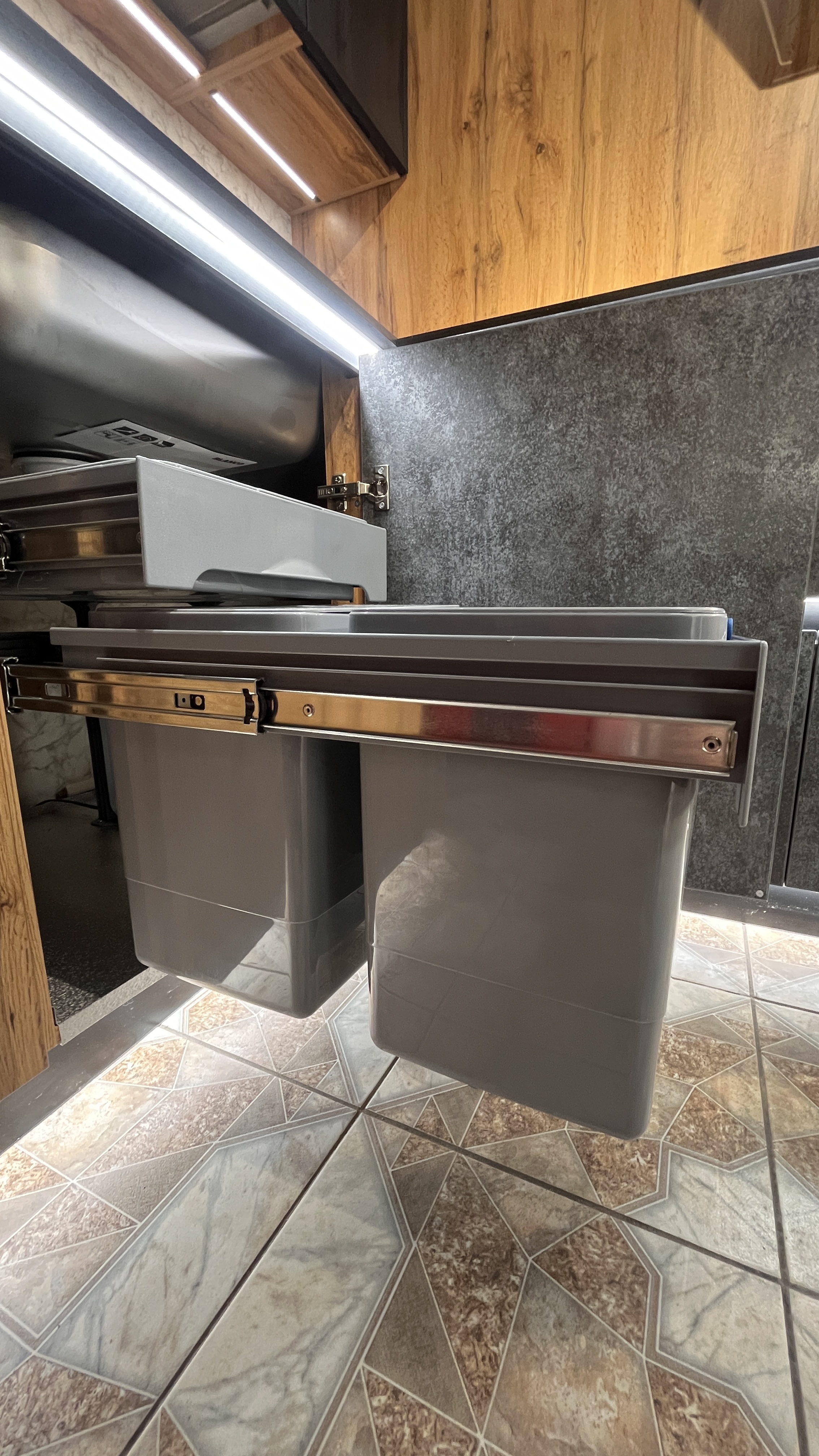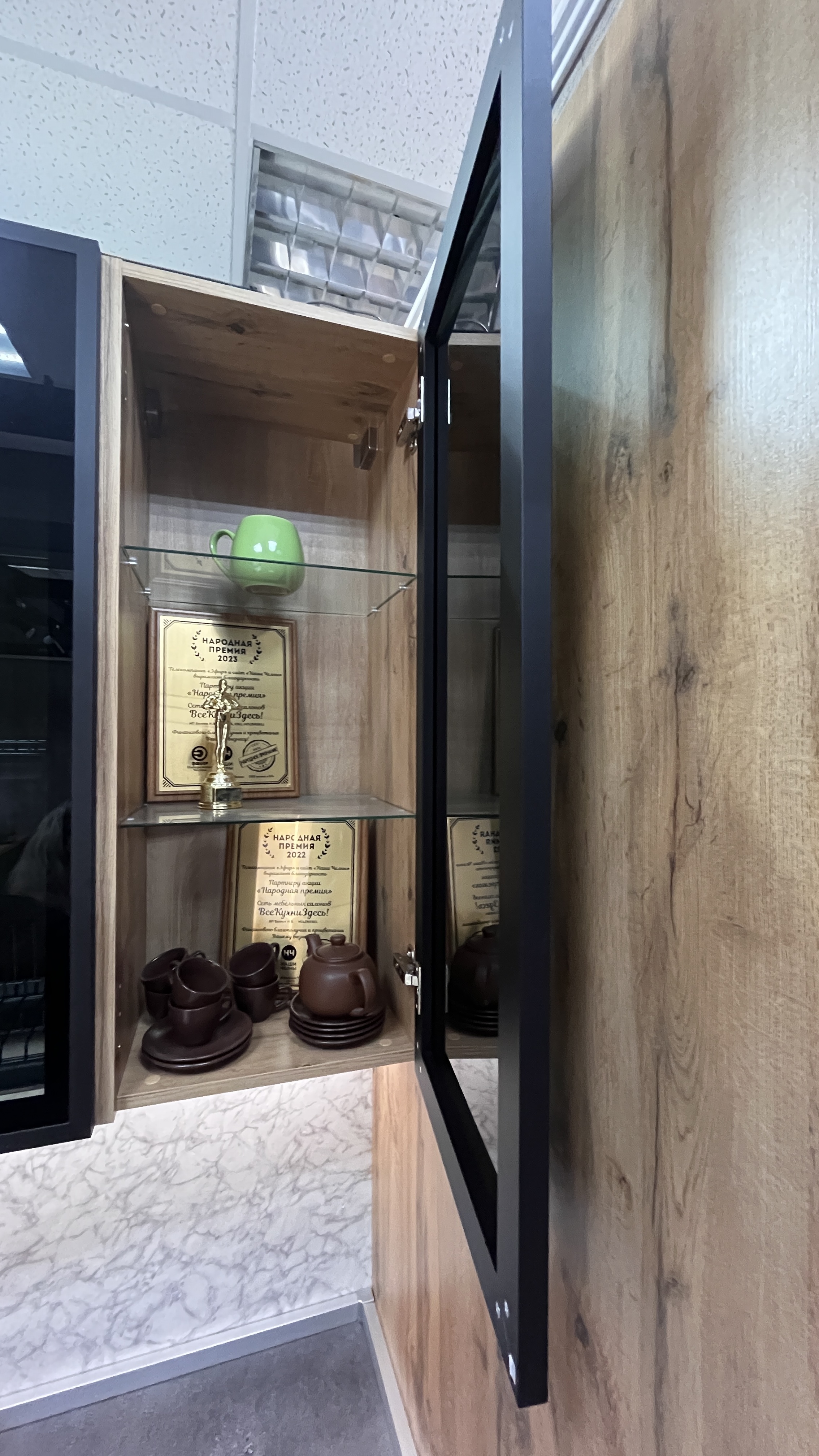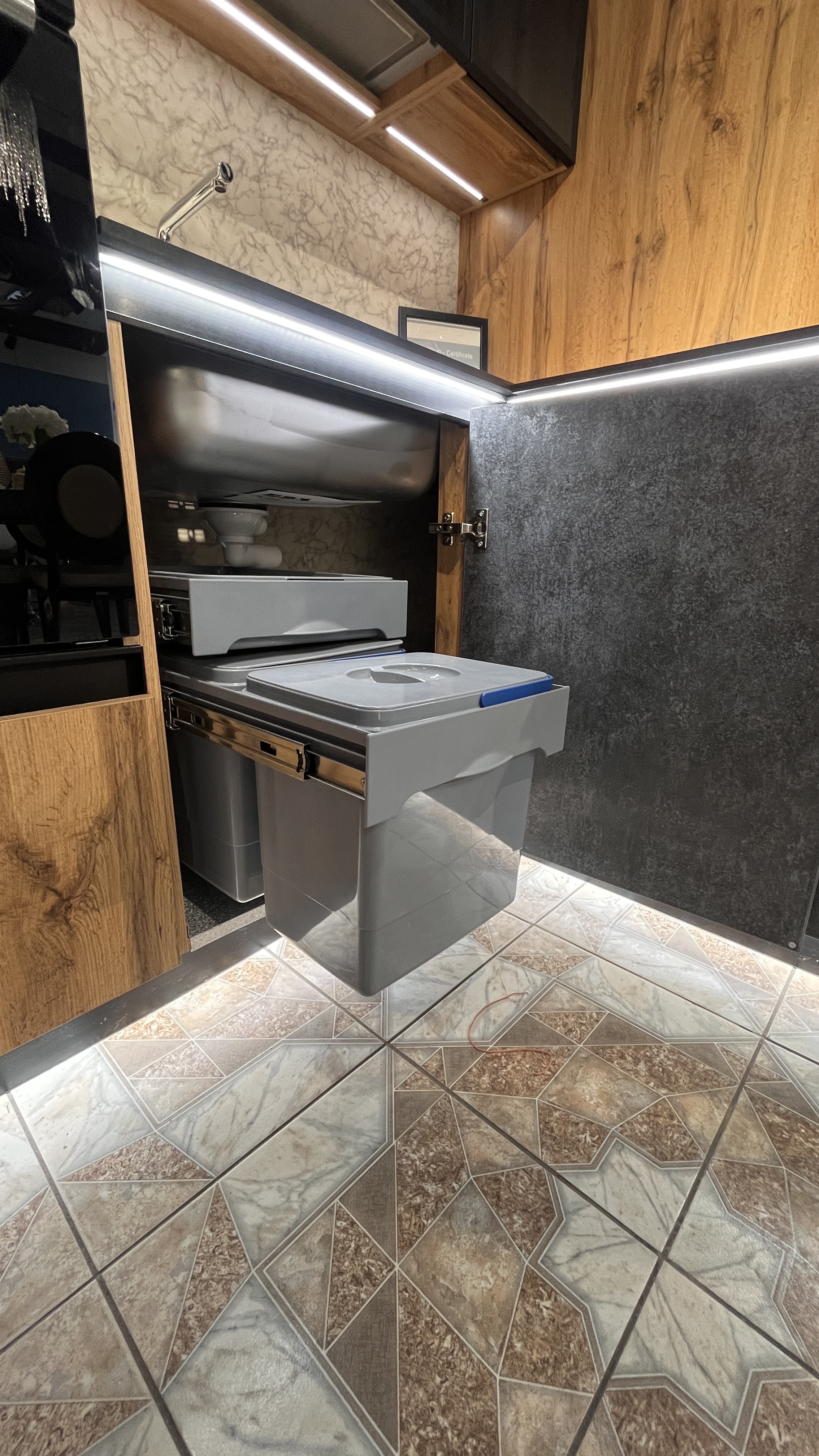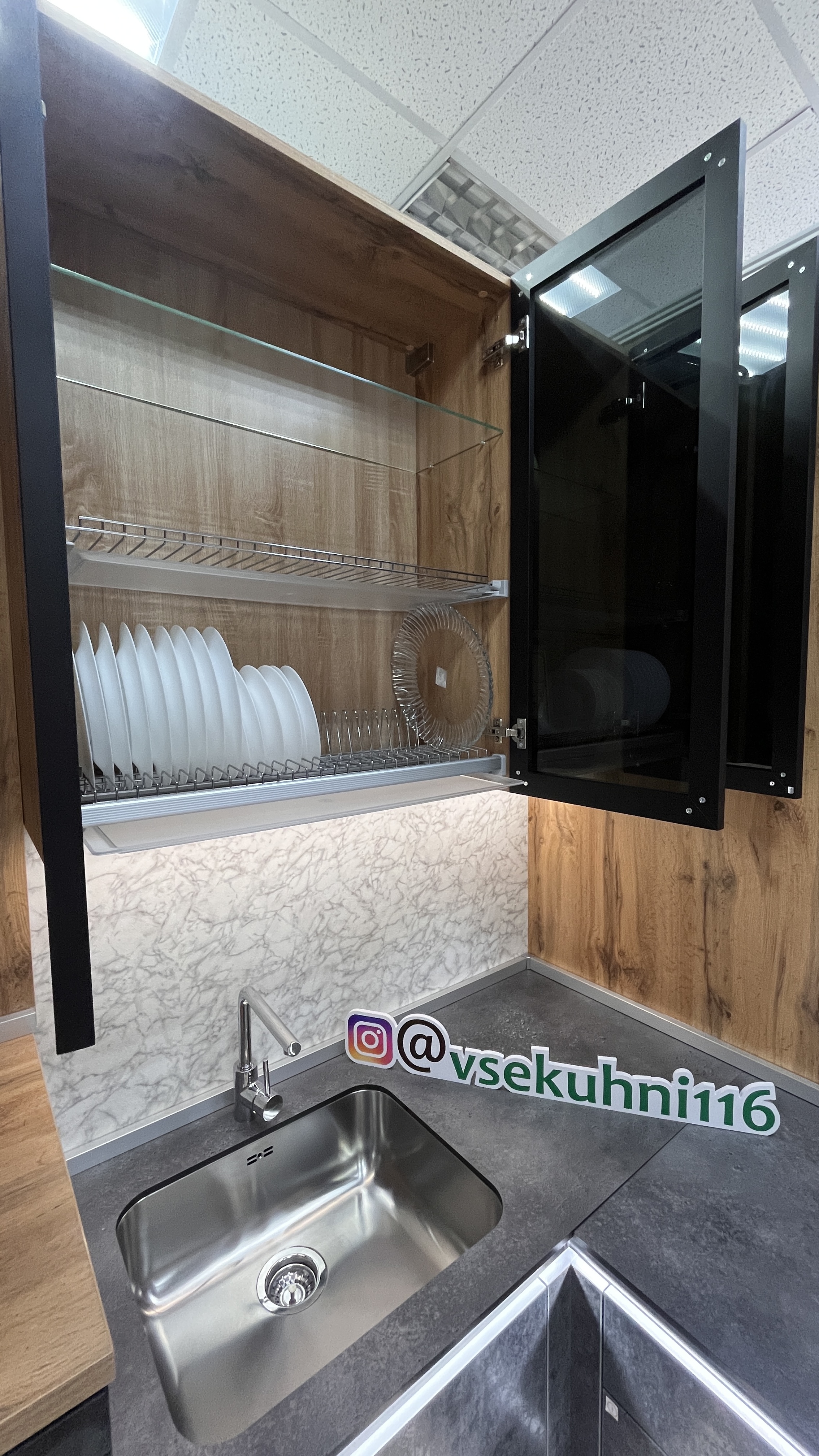 - Встроенная подсветка столешницы + нижних модулей по периметру
