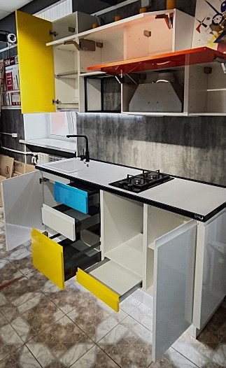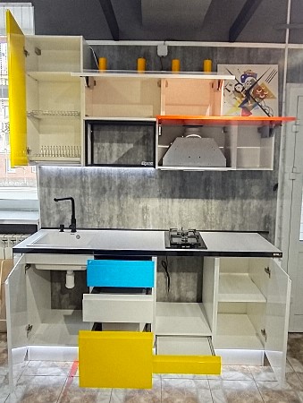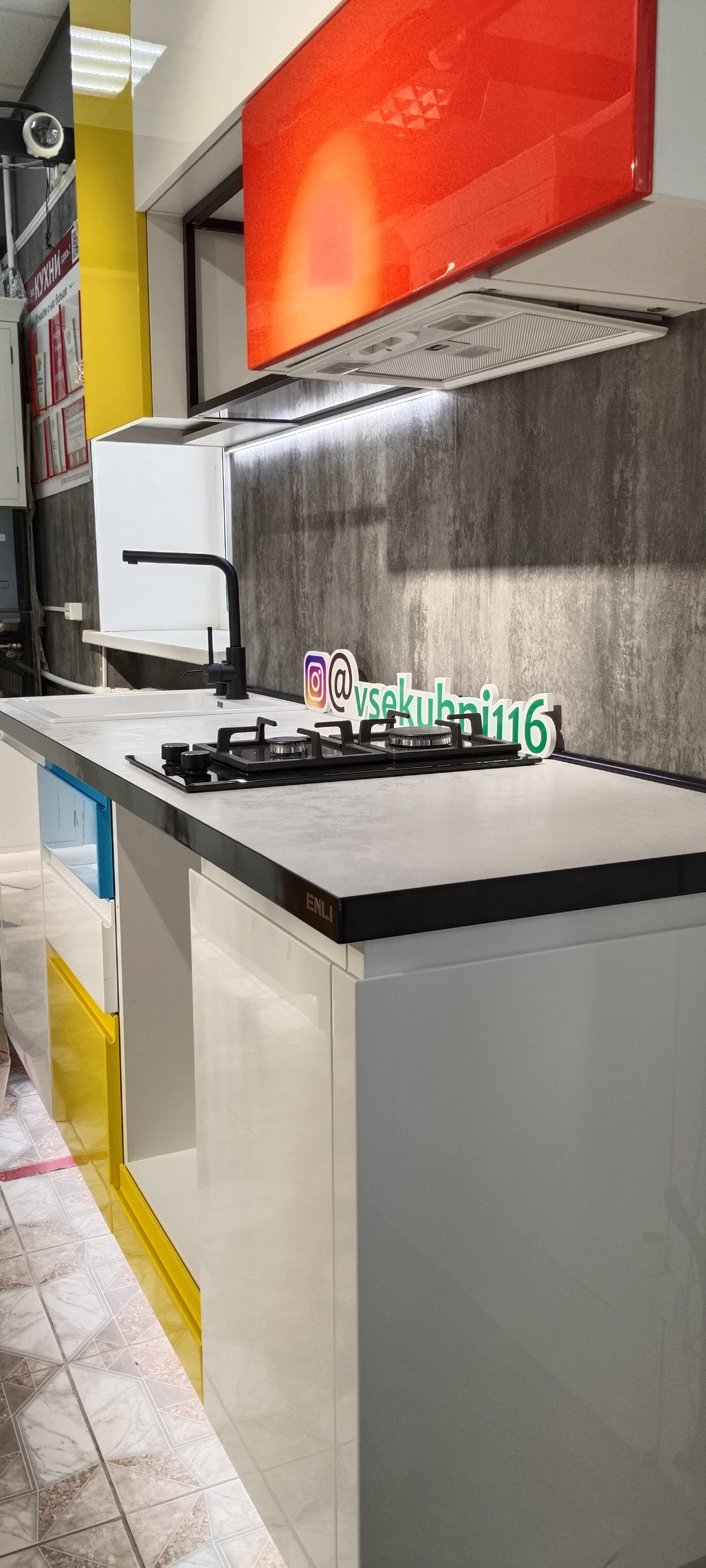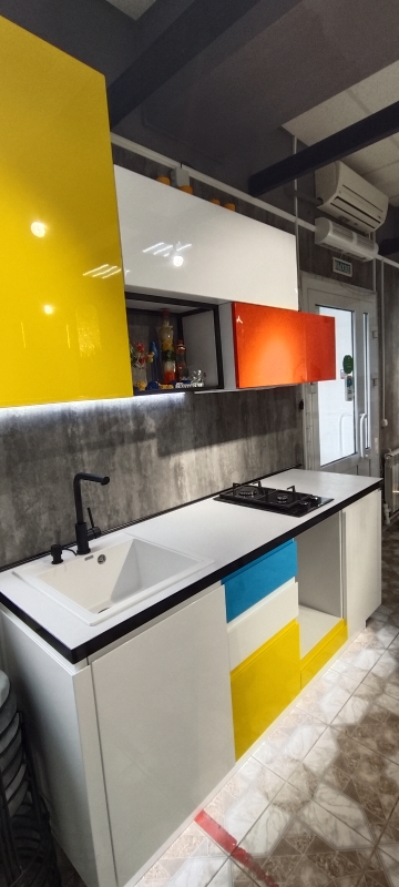 Материал фасада : МДФ эмаль глянец + интегрированная ручка