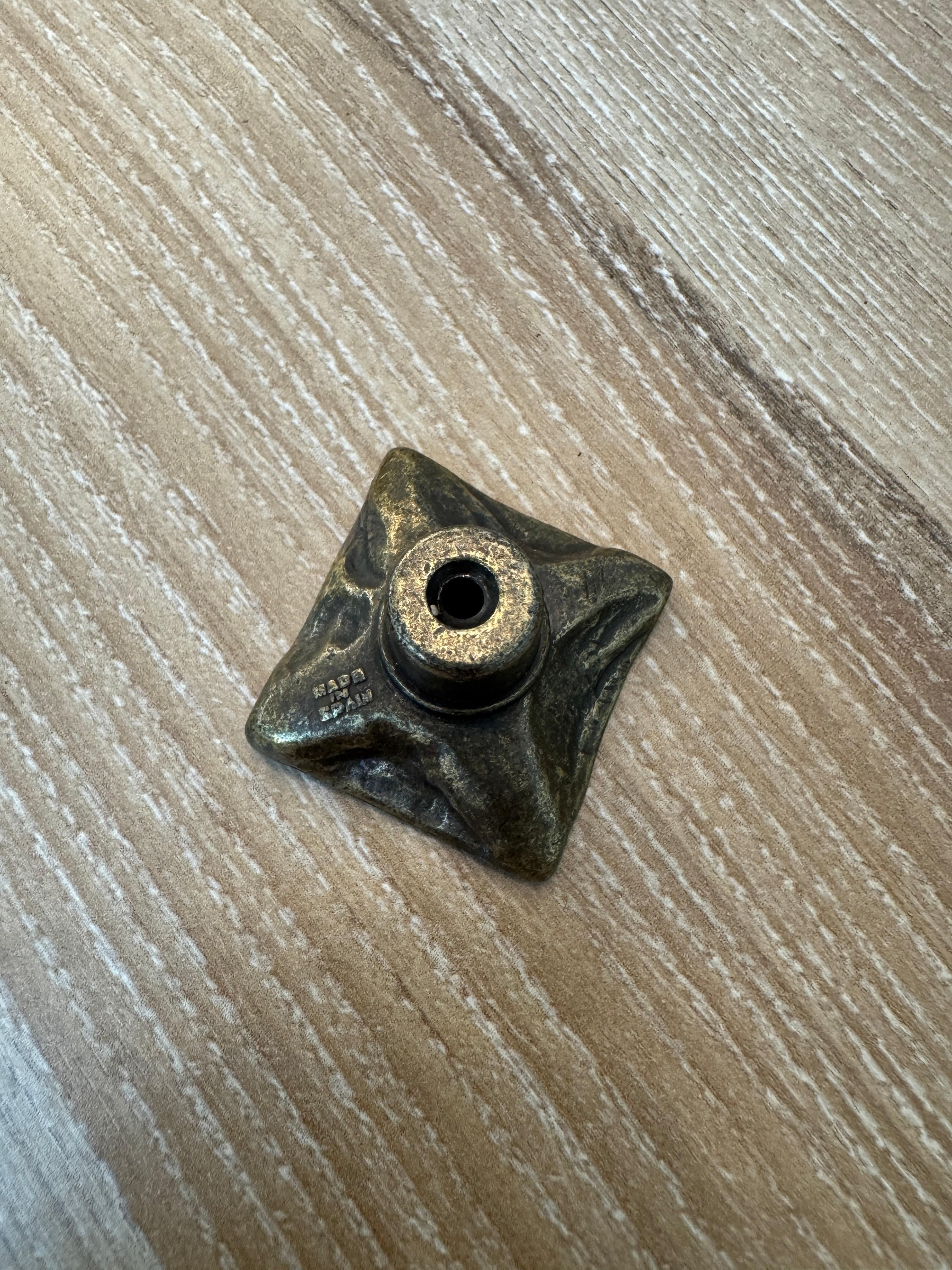 Комментарий: Мебельная ручка-кнопка. Цвет отделки - матовая бронза. Габаритные размеры - 35х35х21 мм. Винт для крепления к фасаду в комплекте (1 шт.), L=25 мм. Материал: металл + гальваническое покрытие. Производитель: Herrajes Nesu (Испания).